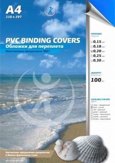 Обложки для переплета ПВХ прозрачные, 0.20мм, А4, прозрачные синие