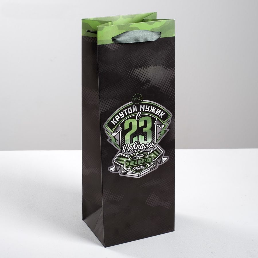 Пакет под бутылку 13х36х10 см Крутой мужик 23 февраля