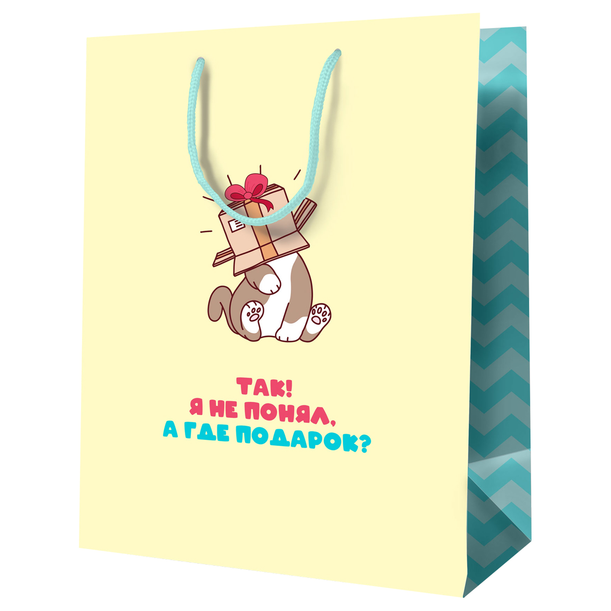 Пакет подарочный 26*32*12см MESHU «А где подарок?», ламинированный
