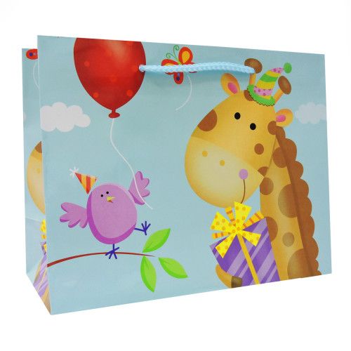 Пакет подарочный картон детский, жираф и птичка, мультиколор