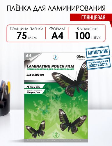 Пакетная пленка для ламинирования, глянцевая, 216х303мм (А4), 75мкм, WF