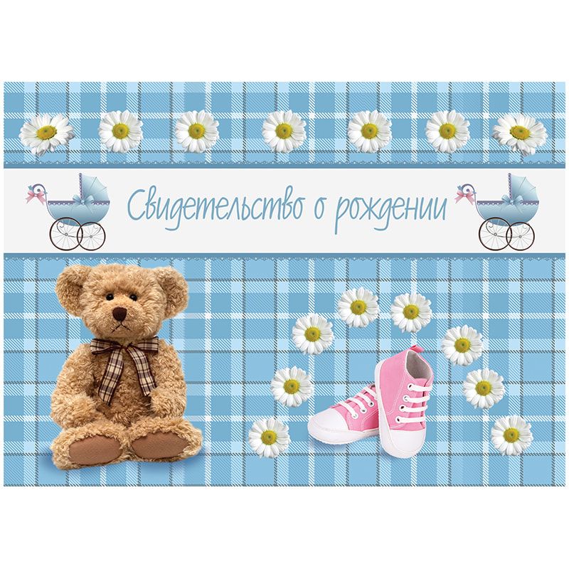 Папка адресная А5 Свидетельство о рождении голубое медвежонок, кеды