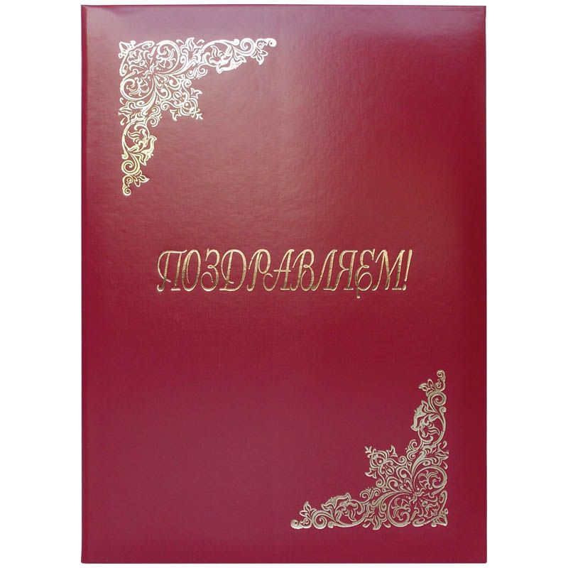Папка адресная «Поздравляем!» OfficeSpace, А4, бумвинил, бордовый, инд. упаковка