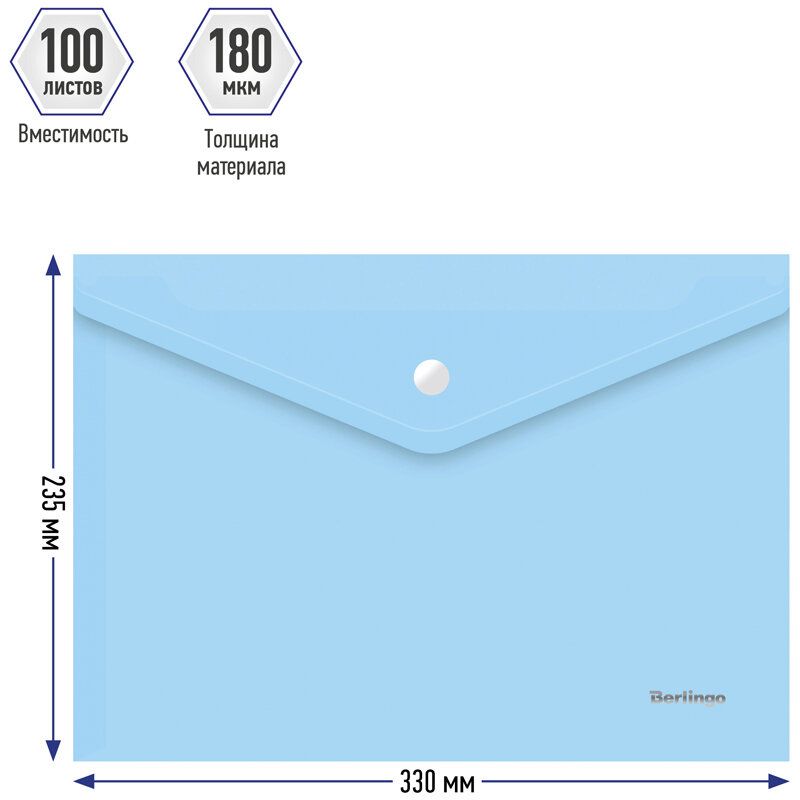 ПАПКА-КОНВЕРТ НА КНОПКЕ 225X125 ММ, 0,18 ММ, ГОЛУБОЙ