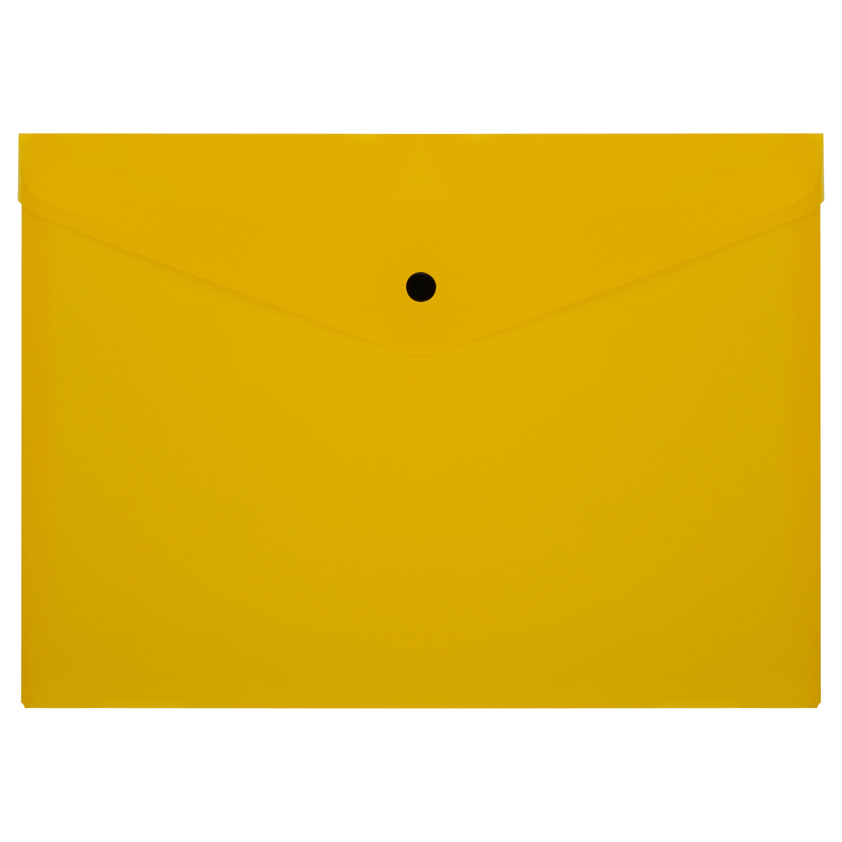 Папка-конверт на кнопке СТАММ А4, 150мкм, пластик, прозрачная, желтая
