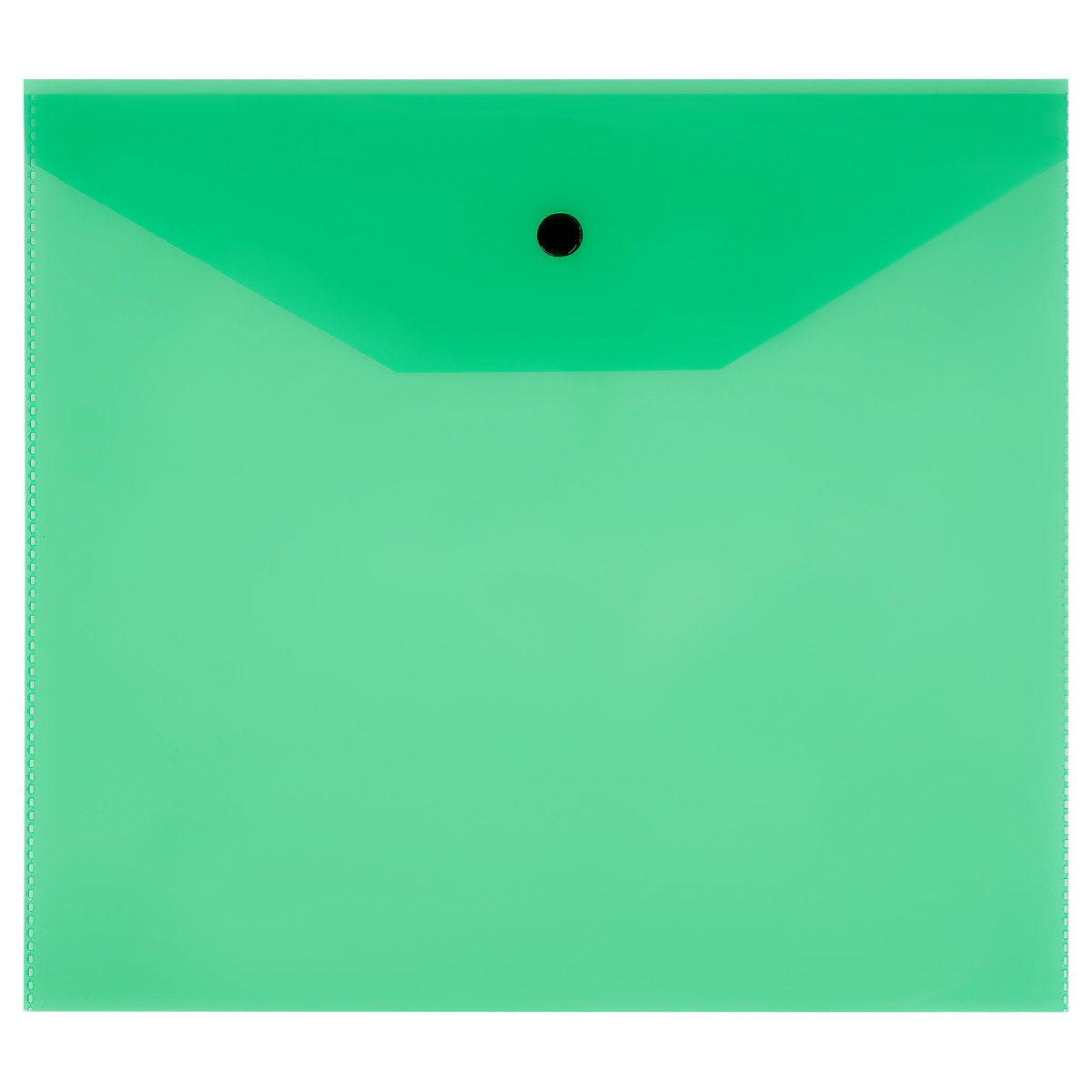 Папка-конверт на кнопке СТАММ А5+, 120мкм, пластик, прозрачная, зеленая