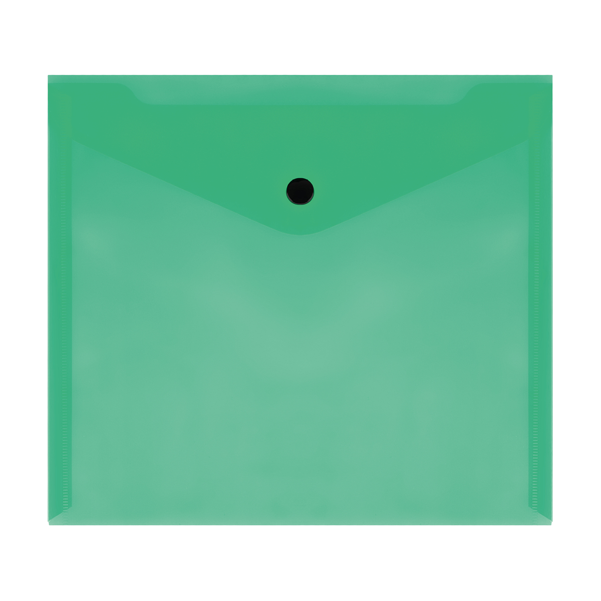 Папка-конверт на кнопке СТАММ А5+, 150мкм, пластик, прозрачная, зеленая