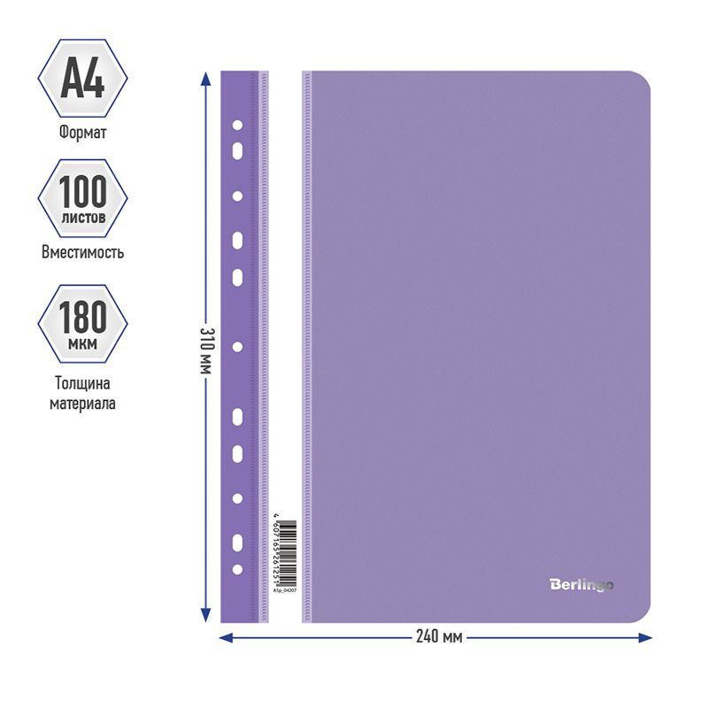 Читать все статьиПапка-скоросшиватель пластик. перф. Berlingo, А4, 180мкм, фиолетовая