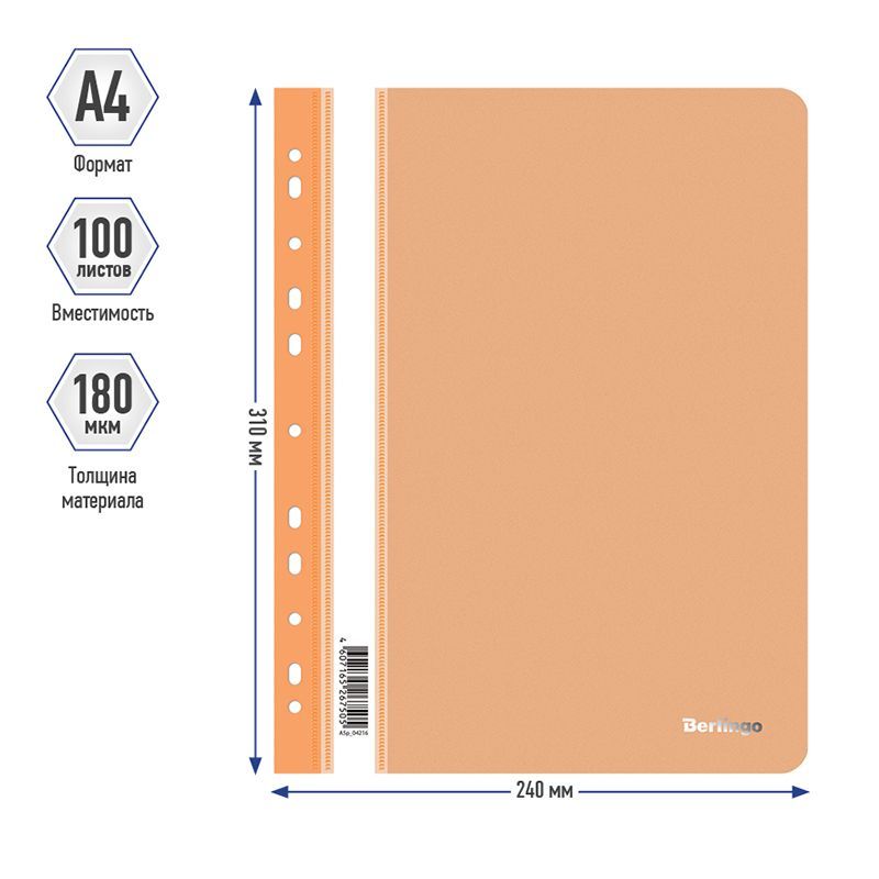 Читать все статьиПапка-скоросшиватель пластик. перф. Berlingo, А4, 180мкм, оранжевая
