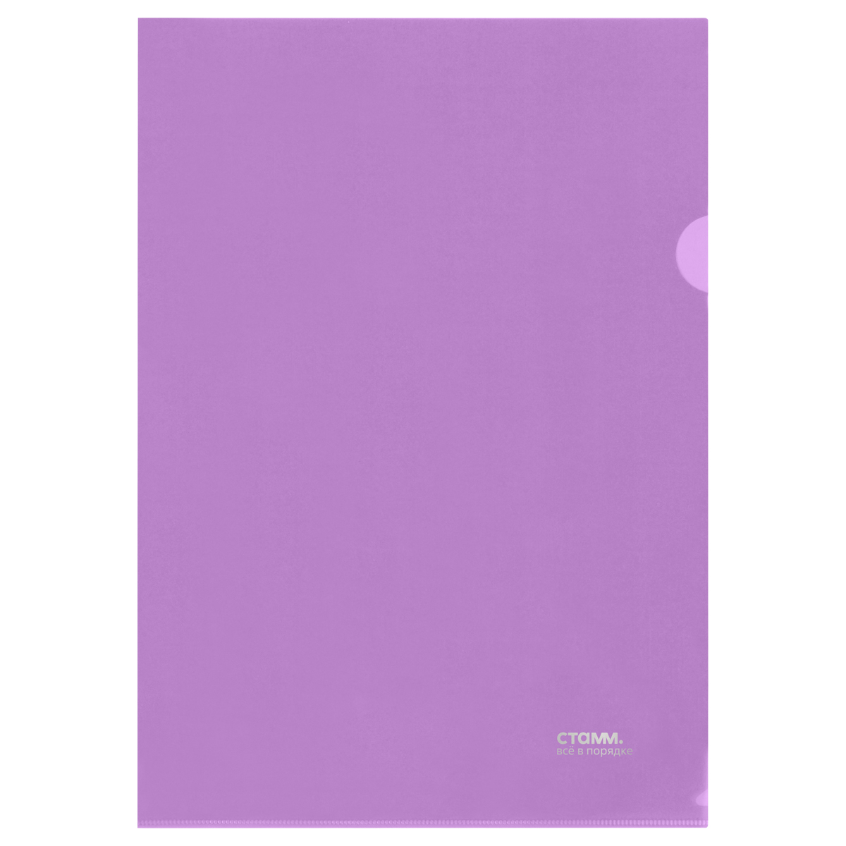 Папка-уголок CTAMM А4, 180мкм, пластик, прозрачная, фиолетовая
