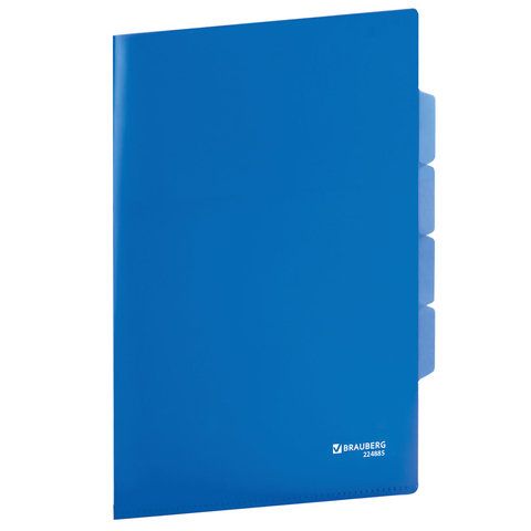 Папка-уголок с 3 отделениями, жесткая, BRAUBERG, синяя, 0,15 мм