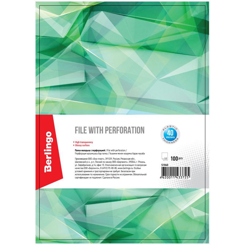 Папка-вкладыш с перфорацией Berlingo, А4, 40мкм, глянцевая