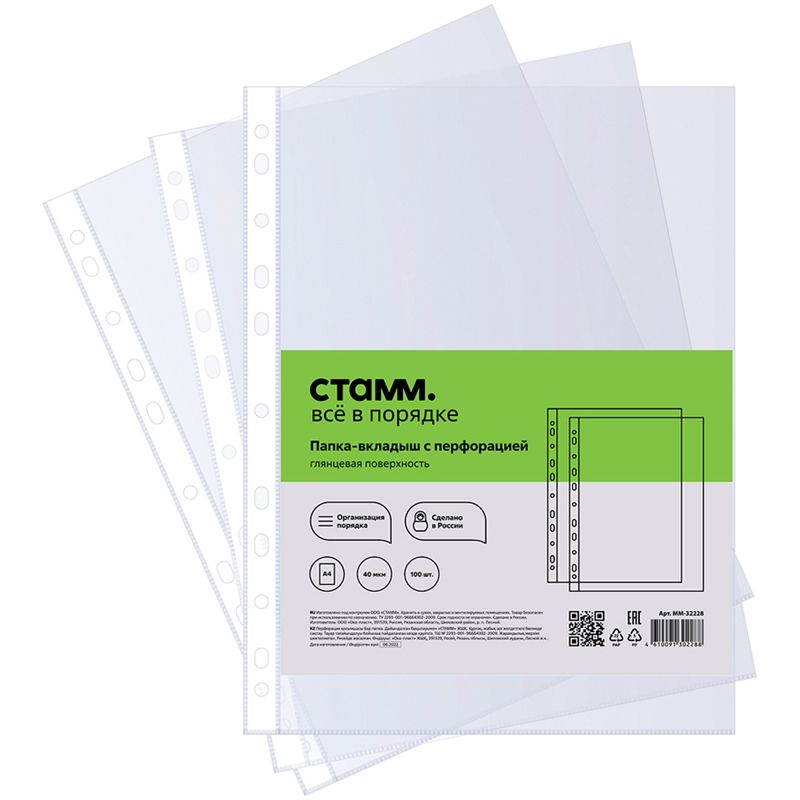 Читать все статьиПапка-вкладыш с перфорацией (файл) СТАММ А4, 40мкм, глянцевая
