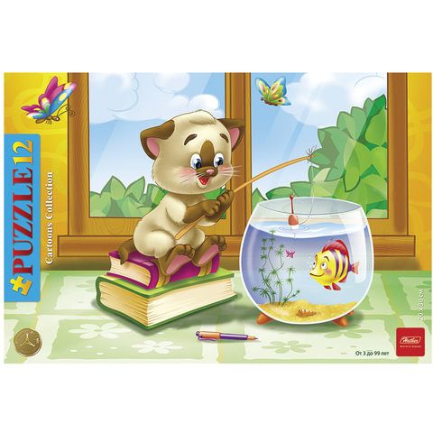 Пазл в рамке, 12 элементов, А4, «Котенок-рыбак», 200х300 мм