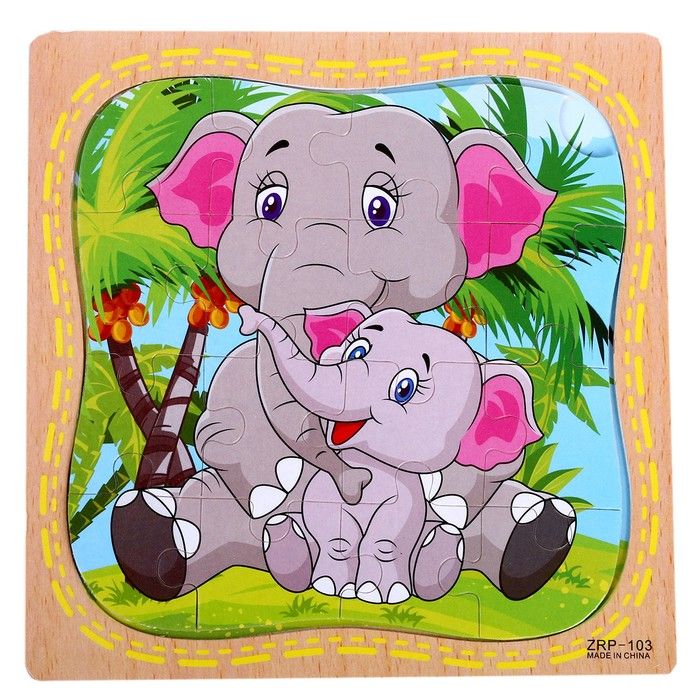 Пазл в рамке «Слонёнок и мама»