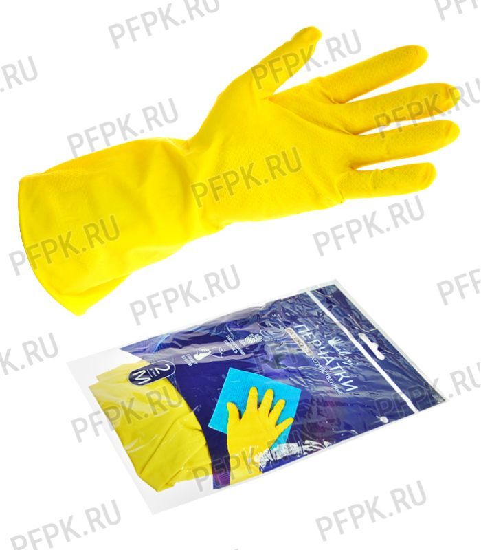 Перчатки латексные М хозяйственные желтые прочные (240)