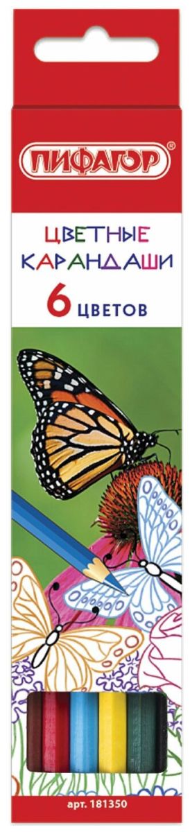 Пифагор Карандаши цветные Бабочки, 6 цветов