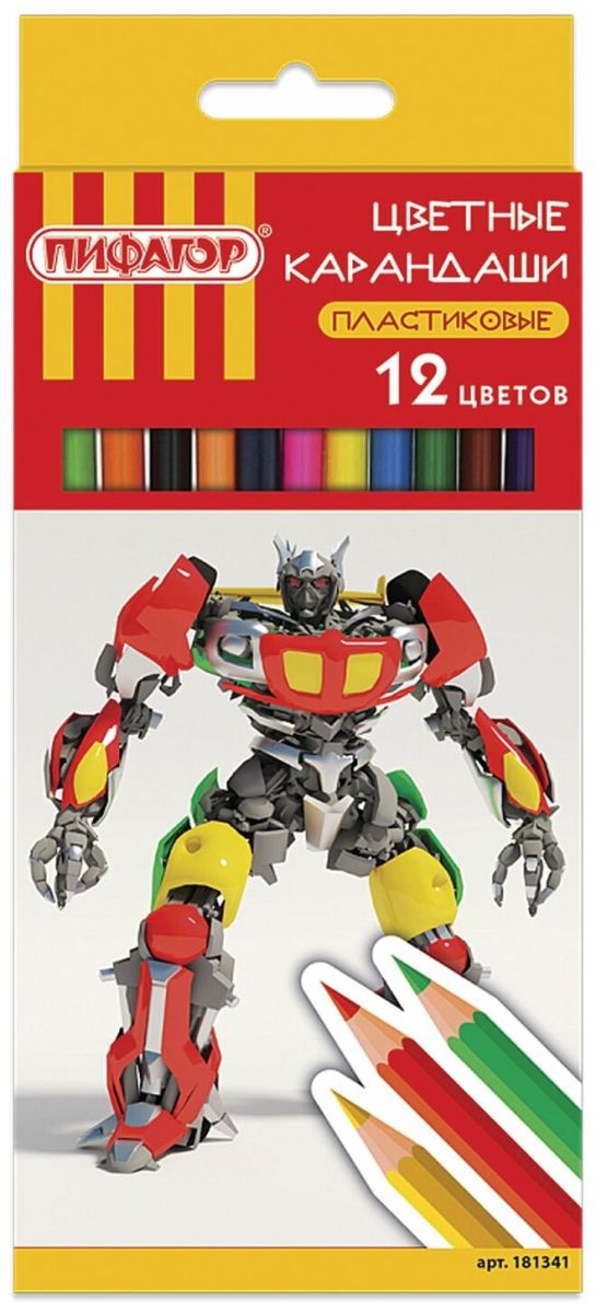 Пифагор Карандаши цветные Боевой робот 12 цветов (181341)