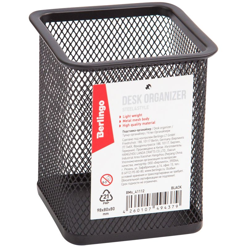Подставка-стакан Berlingo «Steel&Style», металлическая, квадратная, черная