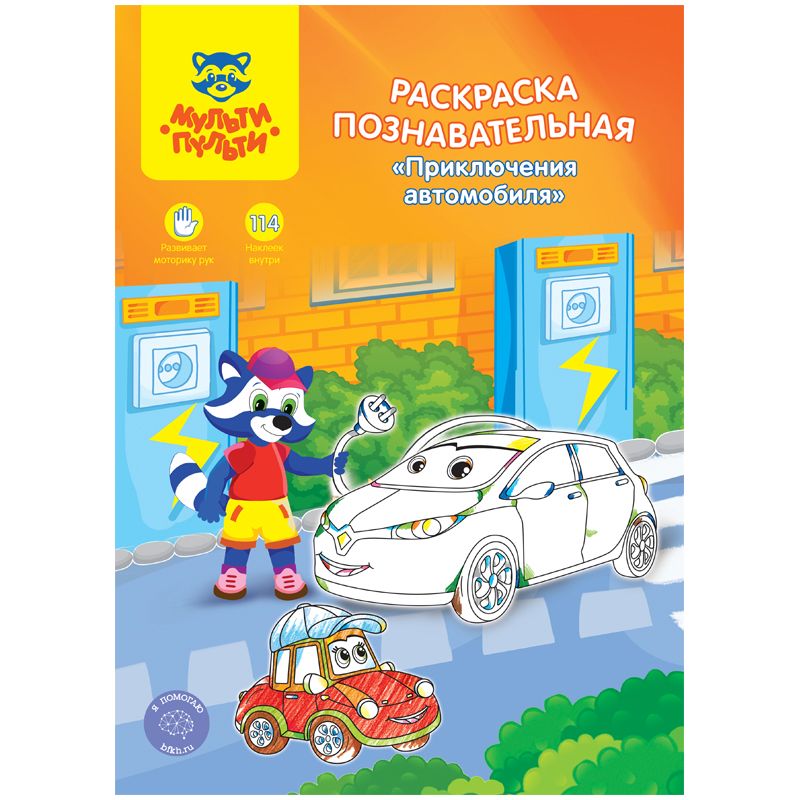 Раскраска А4 Мульти-Пульти «Познавательная: Приключения автомобиля», 16стр., с наклейками
