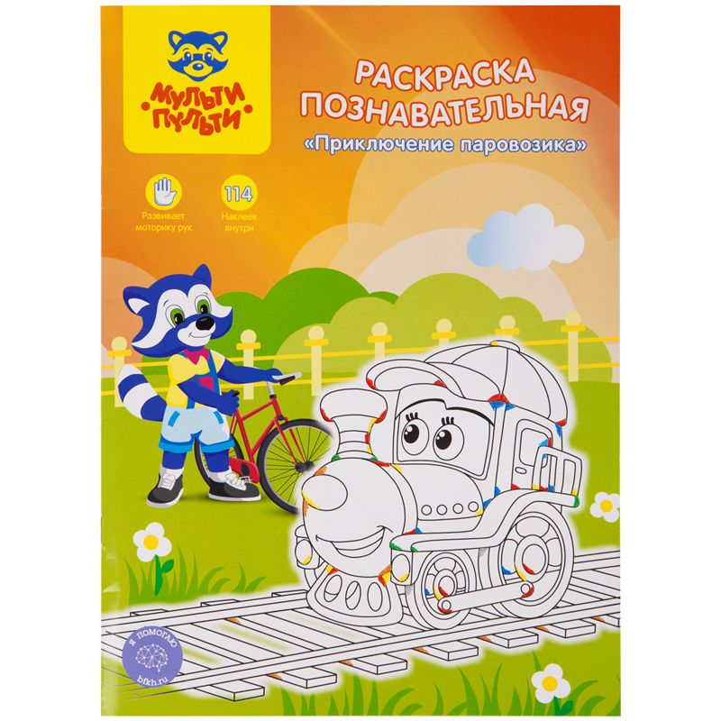 Раскраска А4 Мульти-Пульти «Познавательная: Приключения паровозика», 16стр., с наклейками