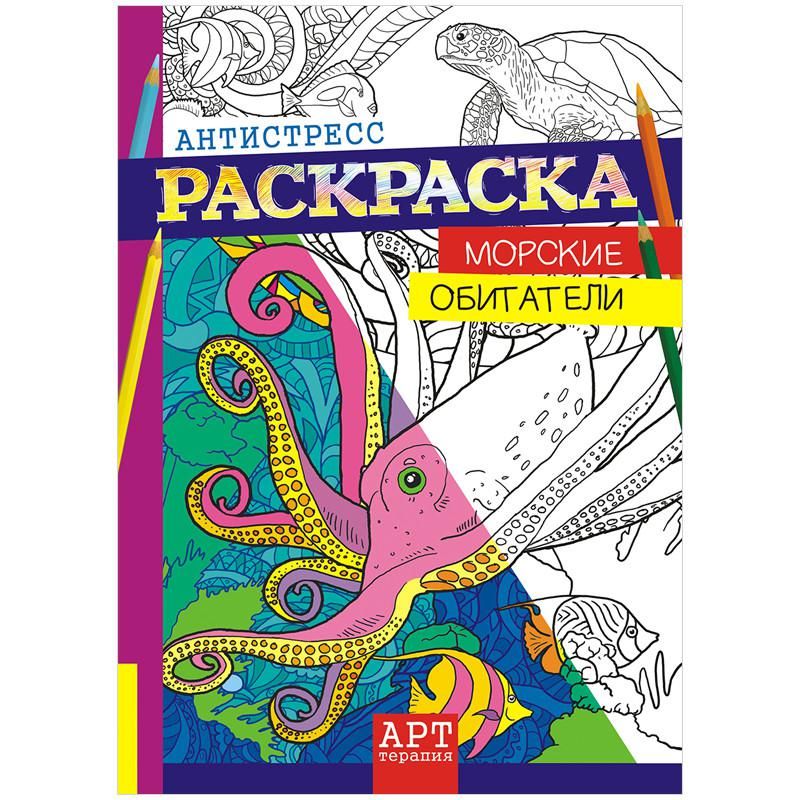 Раскраска-антистресс «Арт-терапия. Морские обитатели», A4, 16 страниц