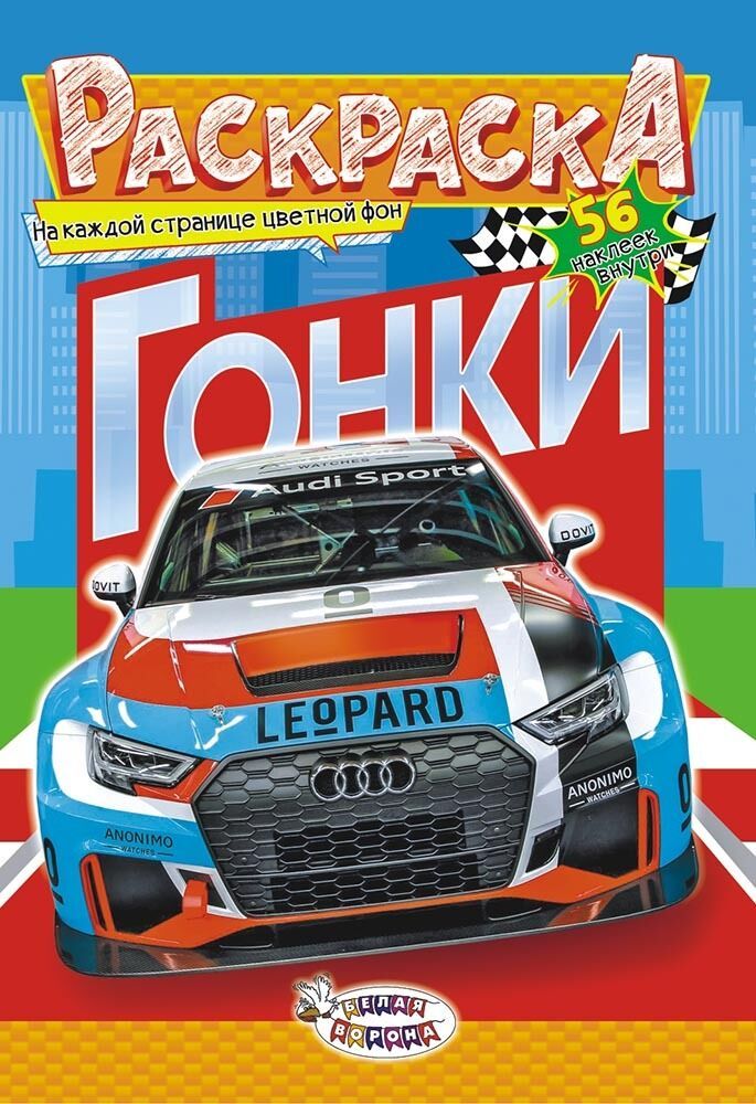 Раскраска с наклейками «Гонки», 56 наклеек