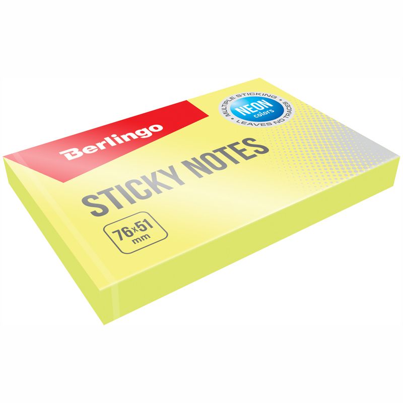 Самоклеящийся блок Berlingo, 76*51мм, 100л, желтый неон
