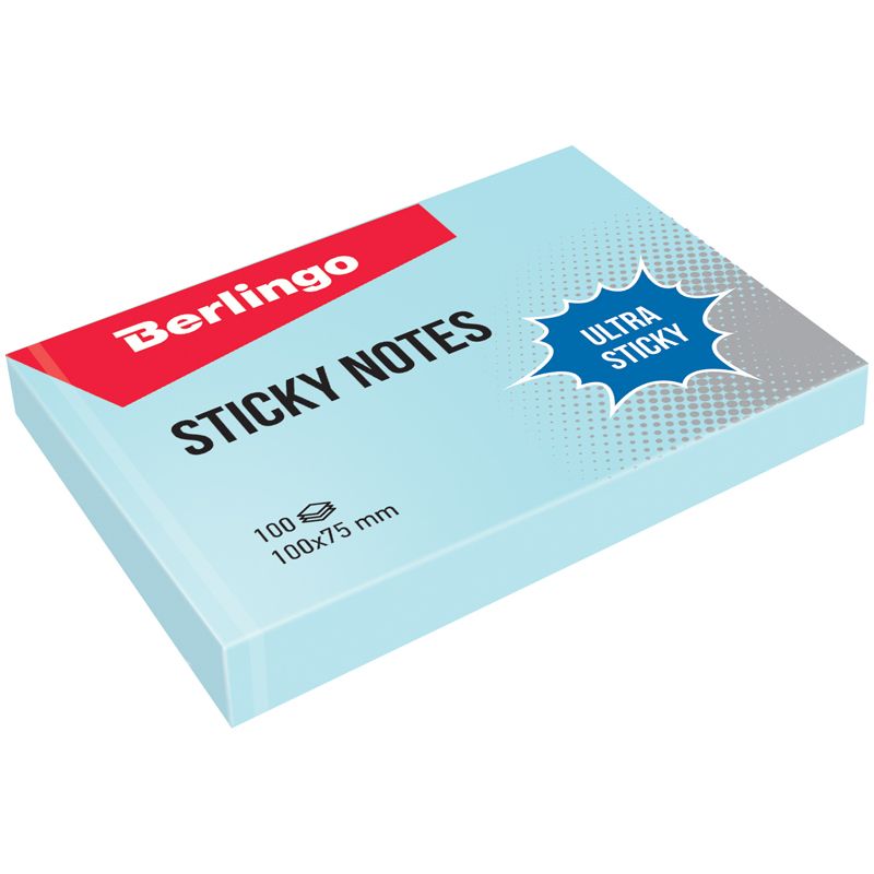 Самоклеящийся блок Berlingo «Ultra Sticky», 100*75мм, 100л, пастель, голубой