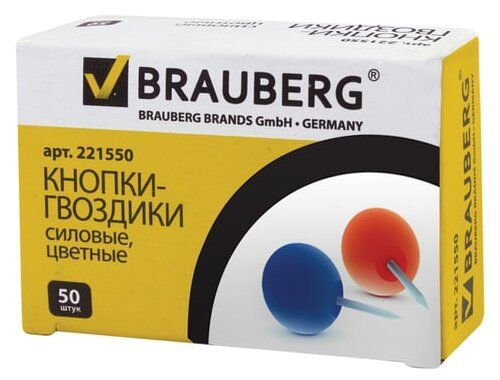 Силовые кнопки-гвоздики Brauberg Цветные (шарики), 50 шт