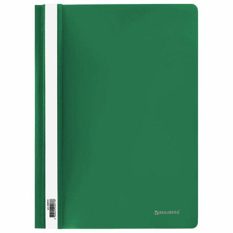 Скоросшиватель пластиковый BRAUBERG, А4, 130/180 мкм, зеленый