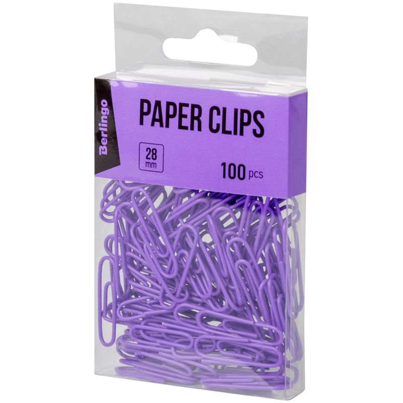 Скрепки 28мм, Berlingo, 100 шт, цветные, ПВХ упак., европодвес, фиолетовые