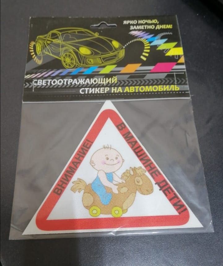 Стикер СВЕТООТРАЖАЮЩИЙ «Знак»Внимание в машине дети"