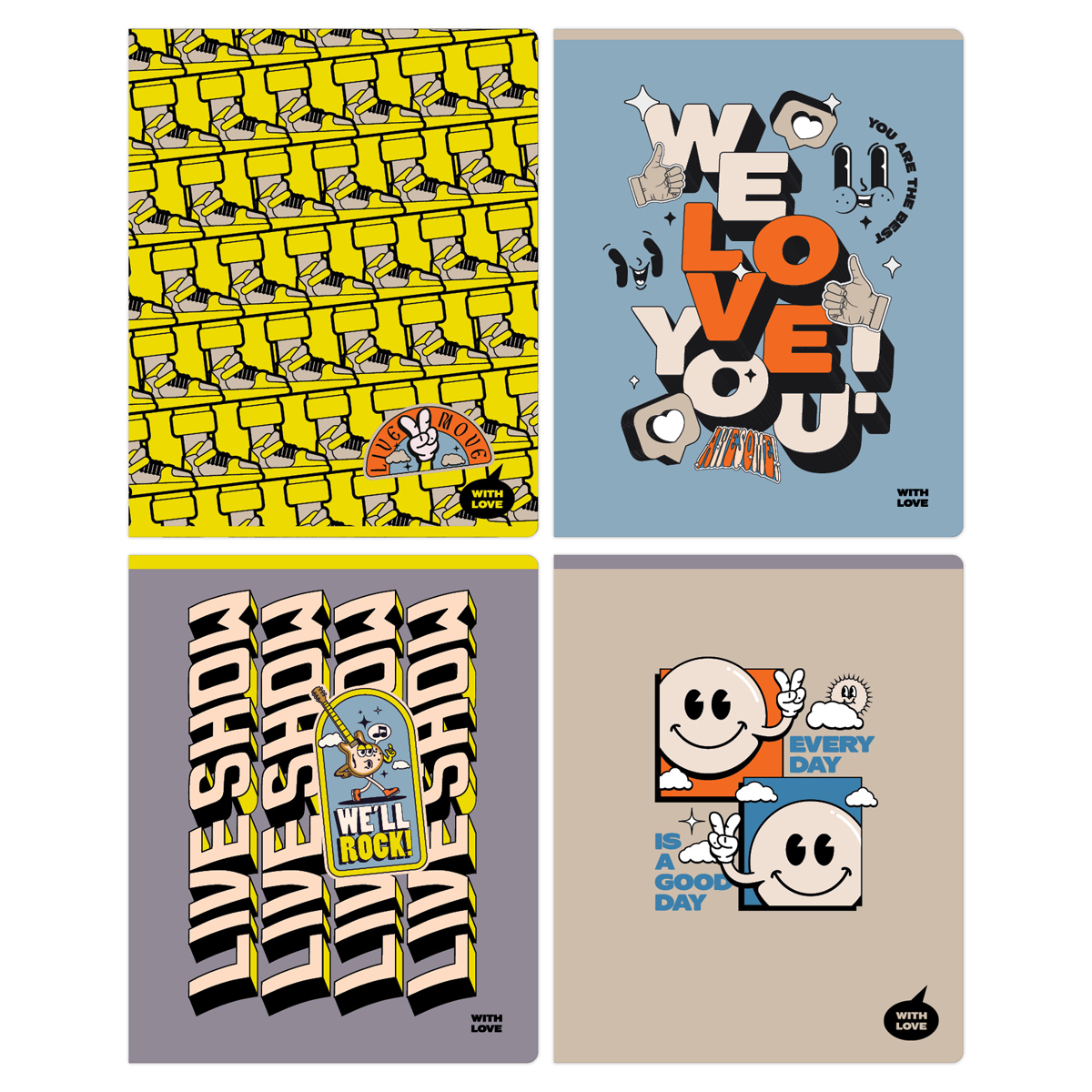 Тетрадь 96л., А5, клетка BG «With love», эконом