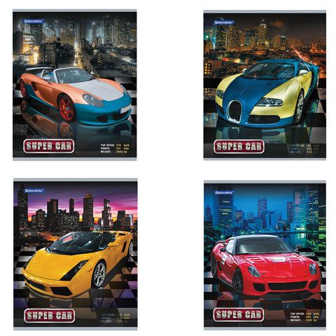 Тетрадь А5, 48 л., BRAUBERG скоба, клетка, обложка картон, АВТО