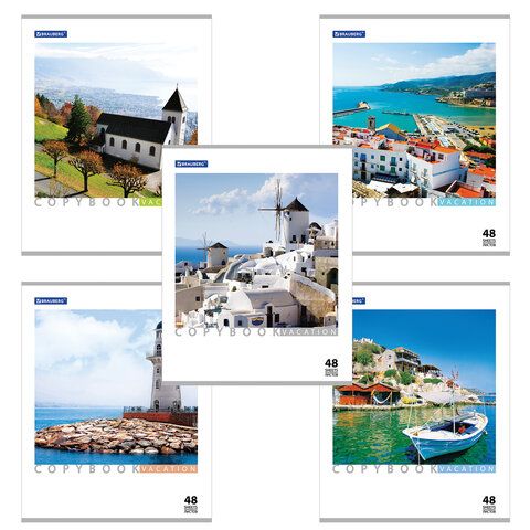 Тетрадь А5, 48 л., BRAUBERG скоба, клетка, обложка картон, КАНИКУЛЫ