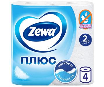 Туалетная бумага Zewa Плюс 2-х слойная Белая 4 рулона