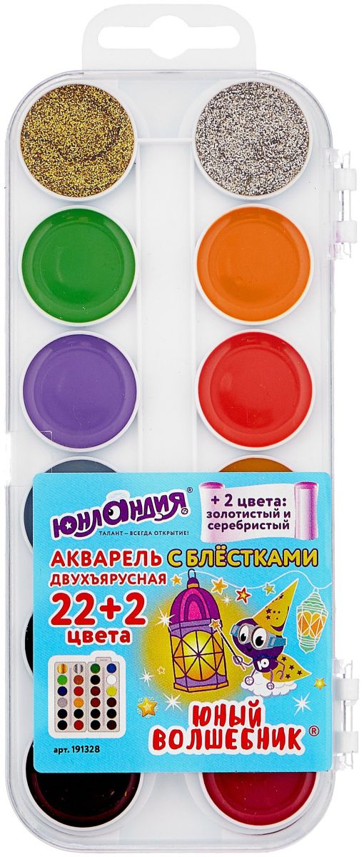 Юнландия Акварель с блестками Юный волшебник 24 цв.