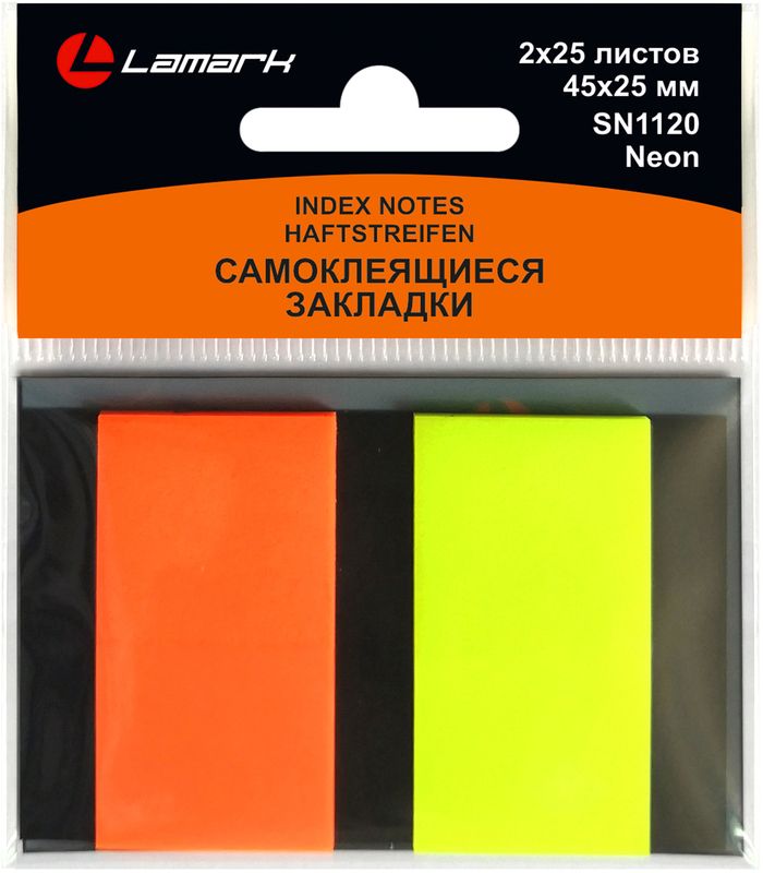 Закладки 45x25 мм, 2x25 л., неон, пластиковые, Lamark