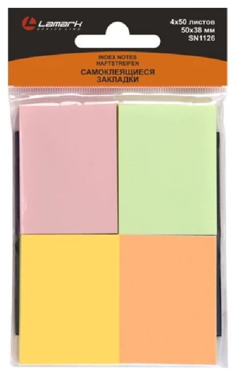 ЗАКЛАДКИ 50X38 ММ, 4X50 Л., ПАСТЕЛЬ, БУМАЖНЫЕ