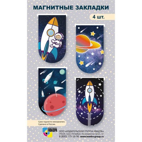 Закладки магнитные мини 4шт., Квадра «Космос»